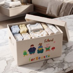 Gardez la chambre bien organisée avec cette boîte de rangement pratique et colorée . Idéale pour les vêtements de bébé ou d’enfant, elle offre un grand espace de stockage tout en restant compacte. Son couvercle protège le contenu de la poussière, et son design mignon apporte une touche décorative à la pièce.
