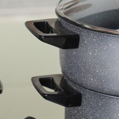 La batterie de cuisine Granitalia 36 pièces est un ensemble complet conçu pour répondre à tous vos besoins culinaires. Fabriquée en granite de haute qualité, elle allie durabilité, performance et design moderne. Les ustensiles garantissent une cuisson homogène et saine, tout en offrant une résistance optimale aux rayures et une facilité d’entretien. Avec ses casseroles, poêles, couscoussier et accessoires inclus, ce pack est idéal aussi bien pour les préparations quotidiennes que pour les grandes occasions.