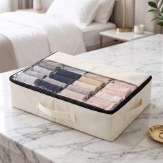 Optimisez votre espace avec cette boîte de rangement sous lit fonctionnelle et élégante . Parfaite pour organiser vêtements, sous-vêtements ou accessoires, elle dispose de compartiments internes pour un rangement clair et efficace. Sa fenêtre transparente permet de visualiser rapidement le contenu sans ouvrir.