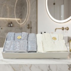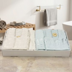 Offrez-vous un moment de détente absolue avec ce somptueux set de bain signé ABM . Conçu en pur coton absorbant, il allie douceur, confort et esthétique. Idéal pour les couples ou pour un cadeau raffiné, ce duo rose poudré et blanc cassé apporte une touche de charme et de luxe à votre salle de bain.
