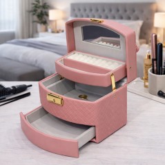 Ce coffret à bijoux compact et élégant est idéal pour ranger vos bijoux du quotidien de manière ordonnée et sécurisée. Grâce à son miroir intégré, son plateau supérieur relevable et son tiroir coulissant, il permet un accès facile à tous vos accessoires. Son format pratique le rend parfait pour une utilisation sur coiffeuse comme pour les déplacements, tout en offrant une belle capacité de rangement dans un design raffiné.