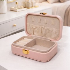 Ce coffret à bijoux compact est parfait pour garder vos bijoux essentiels bien rangés et protégés. Son format pratique permet de l’utiliser aussi bien à la maison qu’en déplacement. L’intérieur en velours doux protège vos bagues, boucles d’oreilles et petits accessoires, tandis que le miroir intégré facilite l’essayage. Son design sobre et élégant s’adapte à tous les styles.