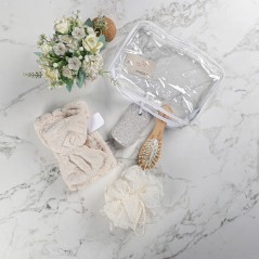 Offrez-vous un moment de détente et de bien-être à la maison grâce à ce coffret complet. Pratique et élégant, il est livré avec une trousse transparente pour un rangement facile et un transport partout avec vous. Idéal comme cadeau ou pour compléter vos essentiels de bain.