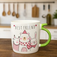 Commencez votre journée avec une touche de bonne humeur grâce à cette tasse en céramique . Son design adorable avec des petits ours souriants et sa poignée verte apportent une ambiance douce et joyeuse à vos pauses café ou thé . Fabriquée en céramique de haute qualité, cette tasse est à la fois résistante, confortable à tenir et facile à nettoyer. Parfaite pour la maison, le bureau ou comme idée cadeau originale.