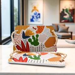 Ajoutez une touche de style et de chaleur à votre table ou votre cuisine avec ce duo de plateaux en bois décoratifs. Parfaits pour le service ou la décoration, ils allient praticité et esthétisme.