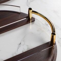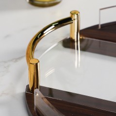 Ce set de 2 plateaux rectangulaires est parfait pour allier élégance et praticité dans vos réceptions comme dans votre quotidien. Conçus avec une finition imitation bois et une base en plexiglass transparent, ils sont solides et raffinés. Les poignées dorées assurent un transport facile tout en ajoutant une touche chic. Idéal pour présenter vos gâteaux, boissons, fruits ou apéritifs.