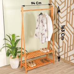 Apportez une touche chaleureuse à votre chambre ou dressing avec ce porte-cintres en bois naturel. Conçu pour optimiser votre rangement, il vous permet de suspendre vos vêtements avec style tout en offrant deux étagères pratiques pour chaussures ou accessoires. Sa structure en bois robuste et son design minimaliste s’intègrent parfaitement à tous les intérieurs.
