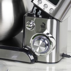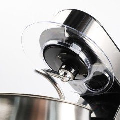 Boîtier : Acier inoxydable - Bol inox 5L avec couvercle transparent anti-éclaboussures - Crochet pétrisseur, fouet, batteur plat en alliage d’aluminium - Spatule incluse - 6 vitesses + fonction impulsion - Éclairage LED intégré - Tête inclinable pour un retrait facile du bol - 4 ventouses antidérapantes pour plus de stabilité - Garantie : 12 Mois
