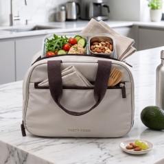 Emportez vos repas partout avec style grâce à ce sac à lunch isotherme pratique et moderne . Conçu pour conserver vos aliments à bonne température, il est parfait pour le travail, l’école ou les sorties. Son format spacieux permet de transporter facilement boîtes repas, fruits et accessoires.