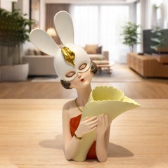 Apportez une touche artistique et raffinée à votre intérieur avec cette statue décorative en résine, représentant une femme élégante tenant un vase. Son design délicat, sublimé par des détails dorés en forme de papillons, en fait une pièce décorative unique, idéale pour un salon, une console ou une étagère. Le vase intégré peut accueillir fleurs séchées ou artificielles.
