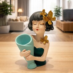 Statue Décorative Femme avec Vase en Résine