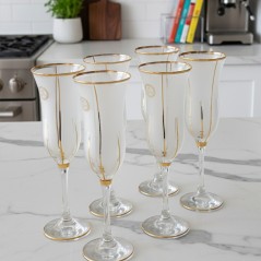 Sublimez votre table avec ce service de 6 verres élégants, ornés d’un décor givré blanc et de finitions dorées raffinées. Leur silhouette élancée ajoute une touche chic et moderne à vos réceptions comme à votre usage quotidien. Parfaits pour l’eau, les cocktails, les boissons fraîches ou un service raffiné lors des occasions.